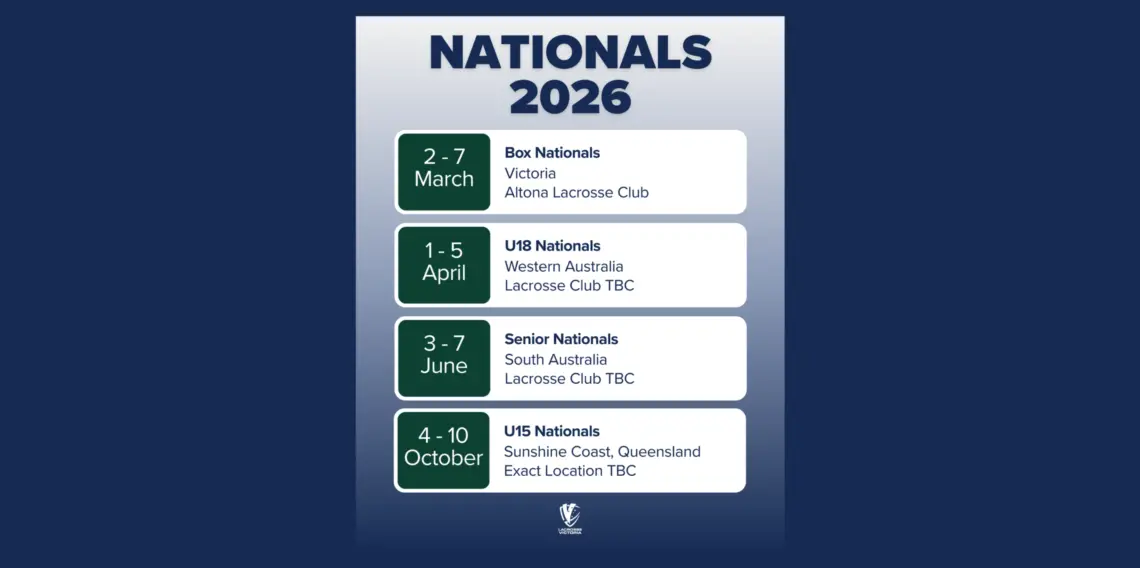 The U15 Nationals will run at the same time as the 2026 Asia-Pacific Sixes Lacrosse Championships, which will also be held on the Sunshine Coast. This international tournament will feature senior men's and women's competition, and will serve as the qualifier for the 2027 World Lacrosse Sixes Championships and will also be the crucial first step in the qualification process for the Olympic Games Los Angeles 2028, pending approval by the International Olympic Committee.